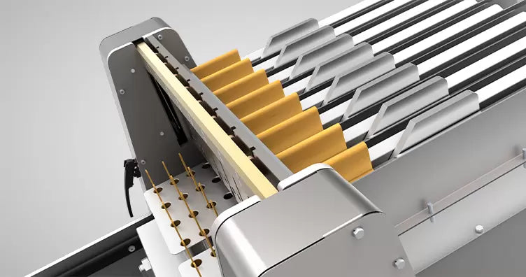 Este equipo automatiza el proceso de alineación de los palitos antes de ser colocados en los helados.