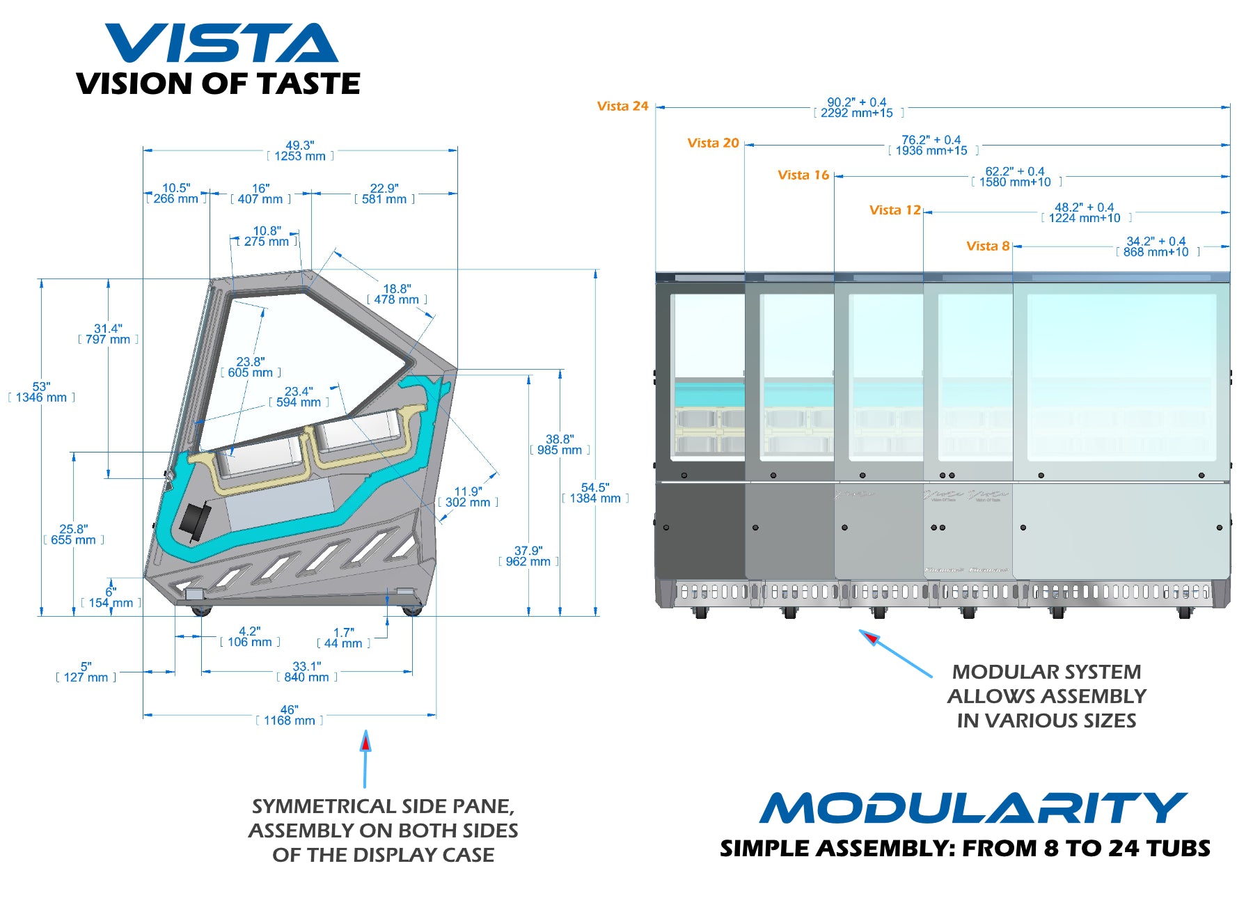 IMPORTANT GAINS IN BUSINESS - We eat with our eyes - that’s why the display case must spark consumer desire. The strong 12-degree pan inclination enhances visibility both up close and from a distance, for adults and children alike. The slanted top glass makes it easier for anyone approaching the display to view the products.